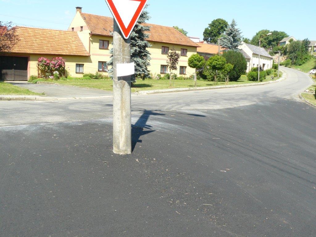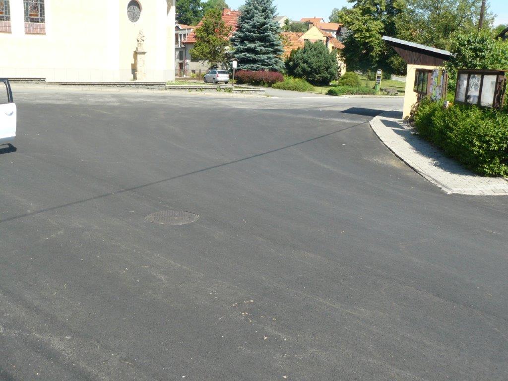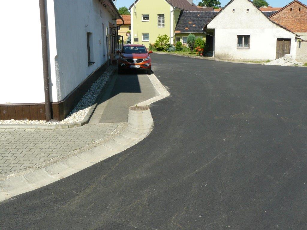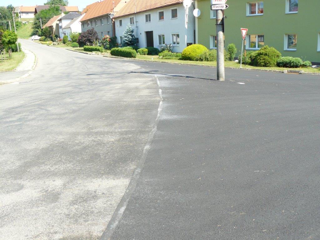 Komunikace na návsi naší obce byla značně poškozená v důsledku oprav kanalizace v minulém období. Výraznou měrou se na špatném stavu podílela také objížďka v době opravy mostu v obci Ústí. Na základě dotace získané z Ministerstva pro místní rozvoj ČR začátkem června firma Skanska a.s. odfrézovala poškozenou vrstvu komunikace a v dalších dnech položila nový asfaltový povrch.